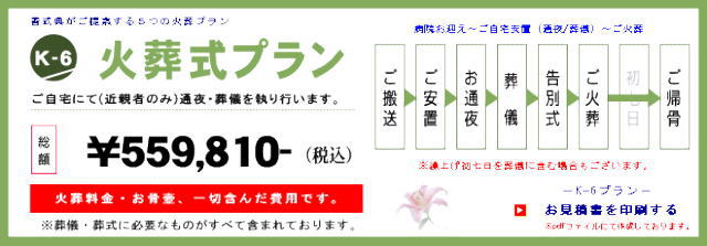 | 湯灌: 【虹プラン】 33,000- 整髪/顔そり/髭そり/爪きり/お化粧 【櫻プラン】 66,000- 虹+お衣装の着せ替え 【宙プラン】 165,000-~ 虹・櫻+ご洗体/お拭き上げ/納棺 |